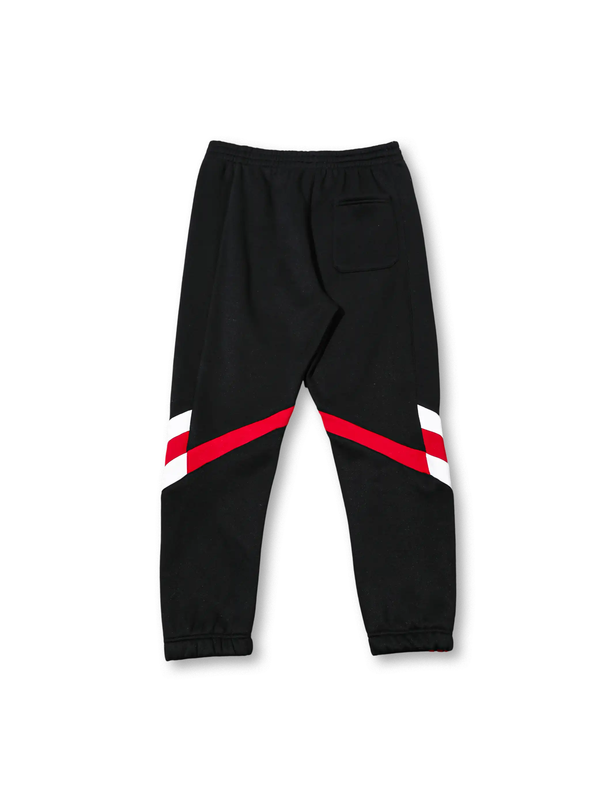 クラブを象徴するブラック×レッドのカラーリングに、三つ葉ロゴとクラシックなユナイテッド刺繍エンブレムを配し、胸元と袖、パンツ側面のライン切替が90年代のトラックスタイルを想起させるデザイン。内側は柔らかいフリース素材を使用し、寒冷シーズンのデイリーウェアや応援シーンでも快適に着用できる構造となっている。