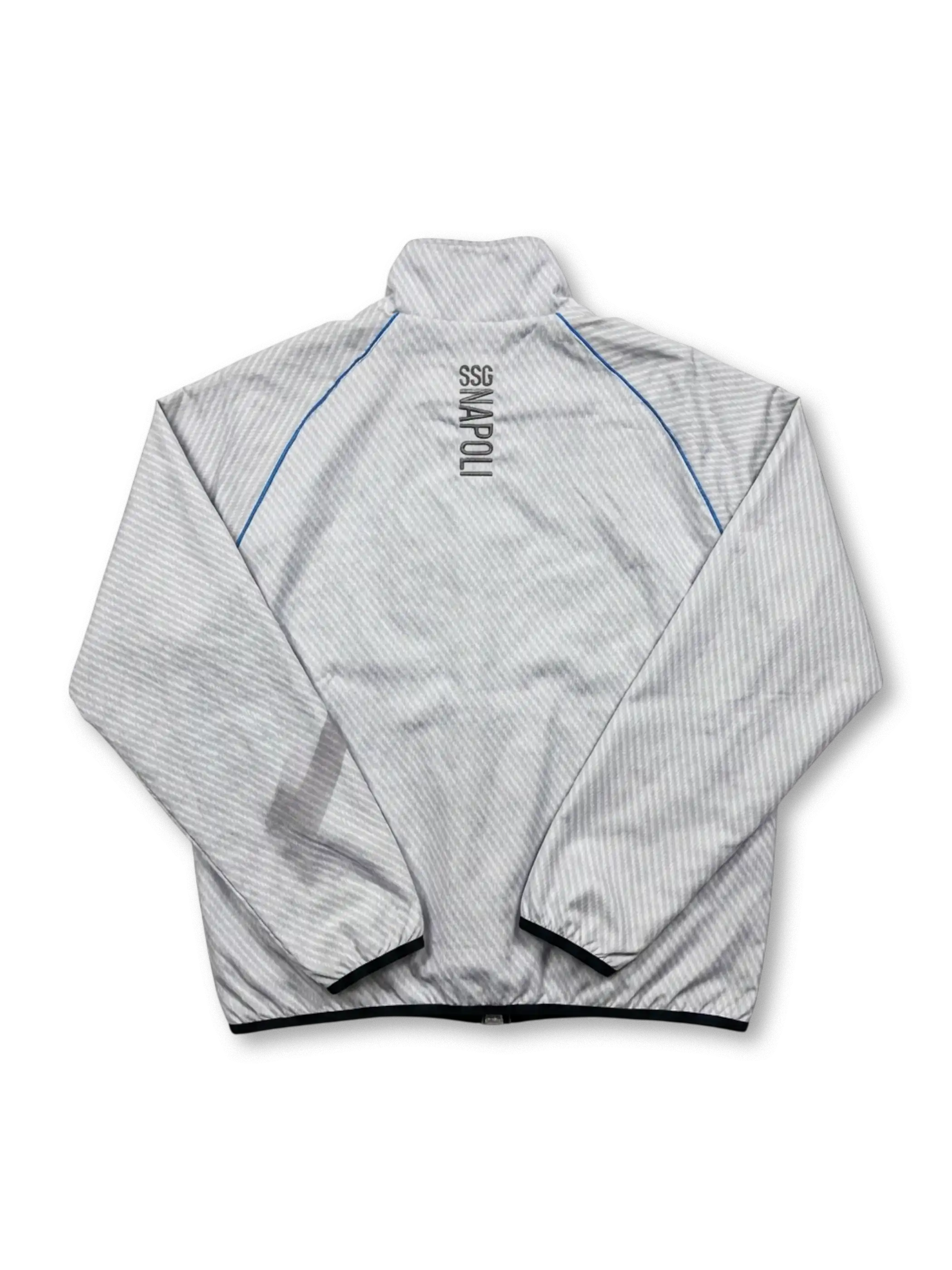 ホワイトを基調に、繊細なストライプ調テクスチャーを施したシェル素材を採用。肩から袖にかけてブルーのパイピングを配し、ナポリらしいクラブカラーを表現している。
