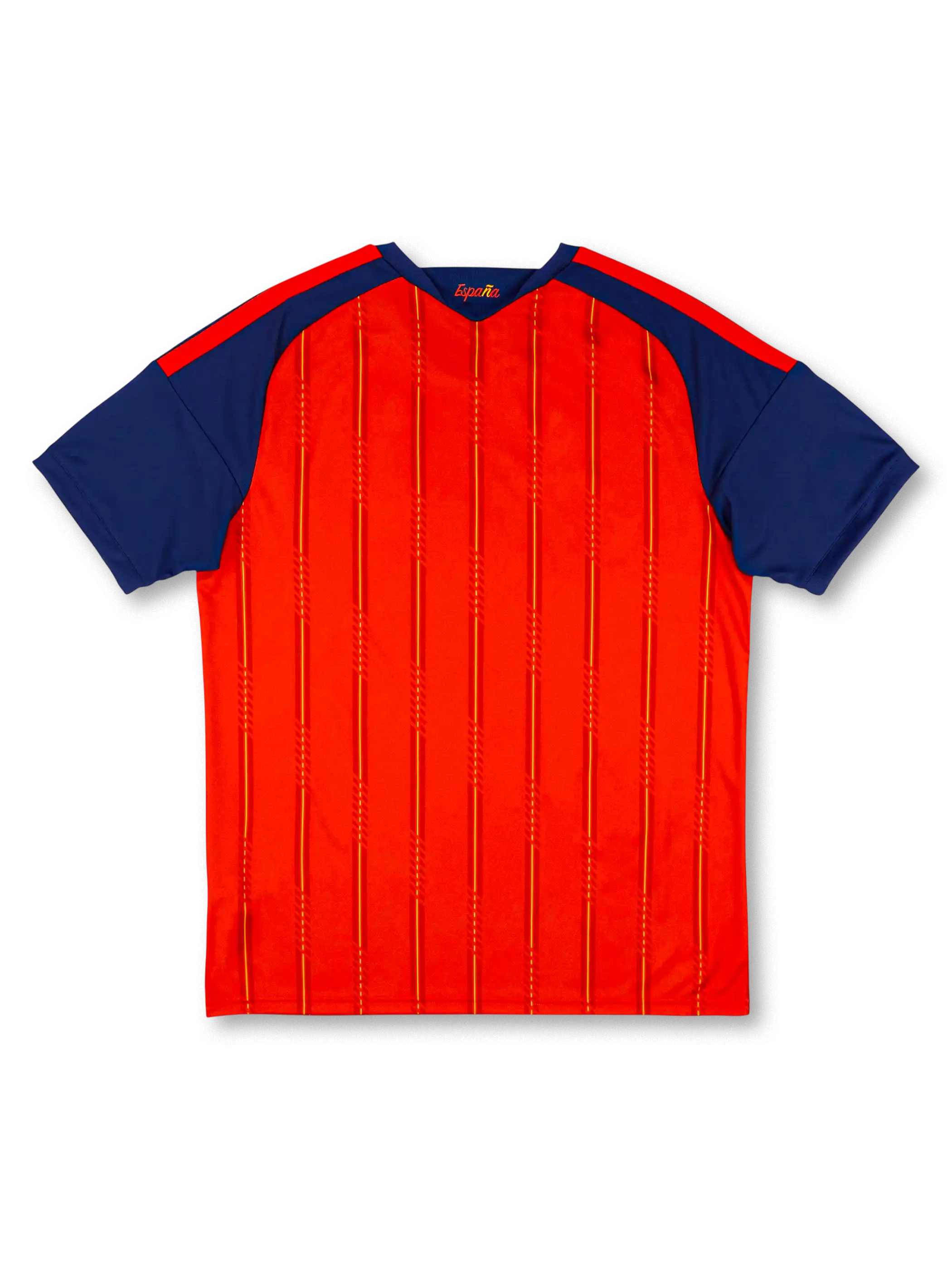 鮮やかなレッドを基調に、細かなリズムを持つ縦ストライプを全面に配したクラシックな表現が特徴。ネイビーのラグランスリーブに加え、肩には国旗カラーを想起させるイエローとレッドのアクセントを配置。軽量ポリエステル素材を採用し、通気性と快適性に優れ、adidasの最新テクノロジーによる機能性も兼備した現代的ホームモデル。