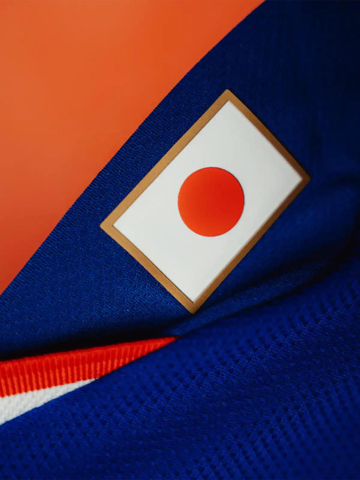 2026年モデルの日本代表ホームユニフォームは、選手着用仕様のAuthenticモデルとして登場。深みのあるサムライブルーをベースに、水平線をモチーフとした放射状のグラフィックが広がり、チームの団結と未来への希望を象徴している。胸には新しい日本代表エンブレムを中央に配置し、ショルダーのホワイトストライプと襟元の赤が鮮烈なコントラストを生む。軽量で通気性に優れたポリエステル素材を採用し、試合中のパフォーマンスを最大限に引き出す仕上がり。静かに燃える情熱と、世界の頂を再び目指す覚悟が込められた“HORIZON”デザイン。