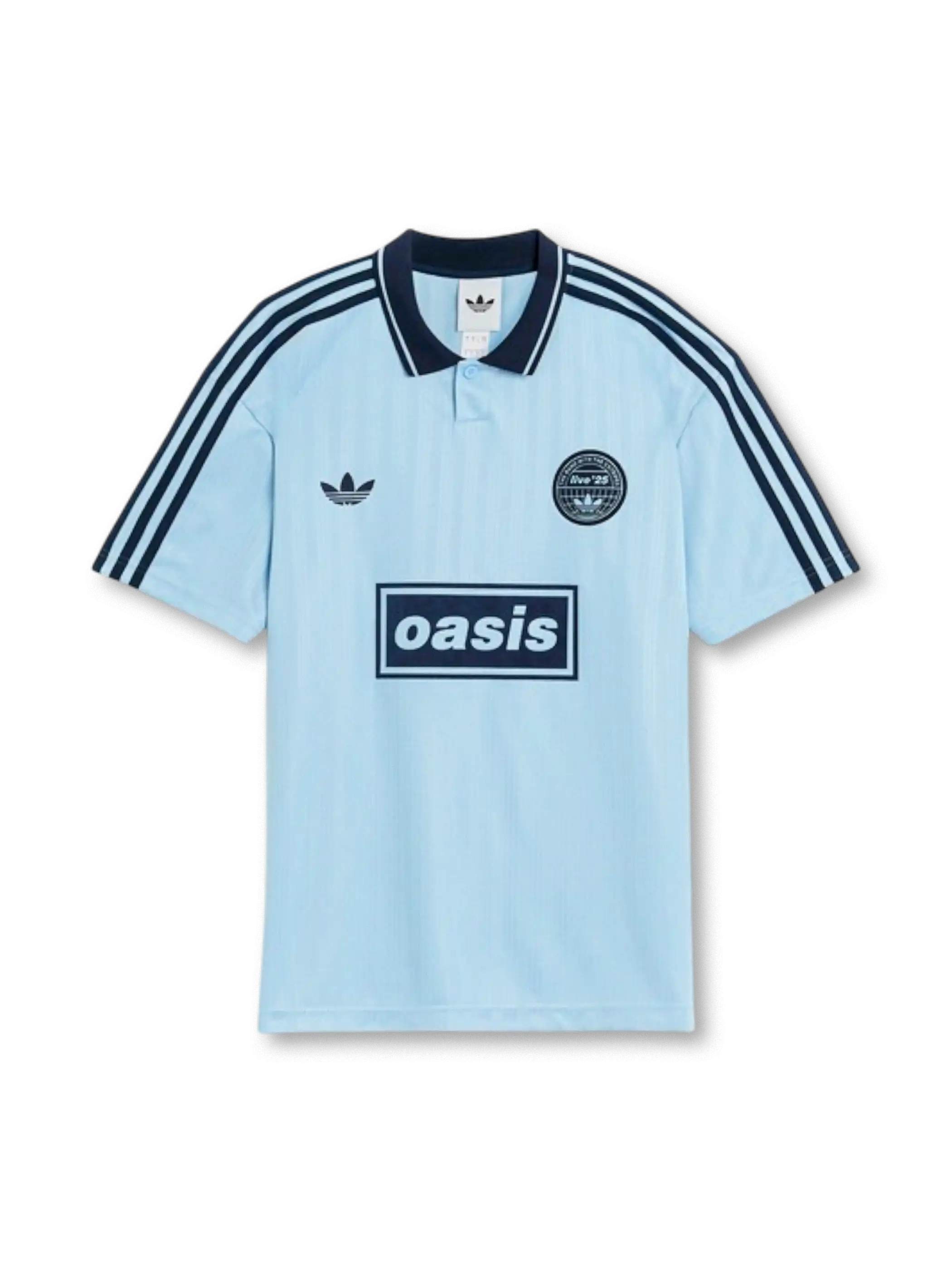 OASIS結成30周年と“Live ’25”ツアー開催を記念したadidas Originalsとの特別コラボレーションモデル。クラシックなスリーストライプと襟付きデザインを採用し、フロントには“oasis”ボックスロゴ、左胸にはライブロゴパッチを配置。背面には“25”の特製ナンバリングをプリント。カラーはスカイブルーとブラックの2色展開で、マンチェスターのカルチャーを象徴するストリートクラシックとして制作された数量限定コレクション。