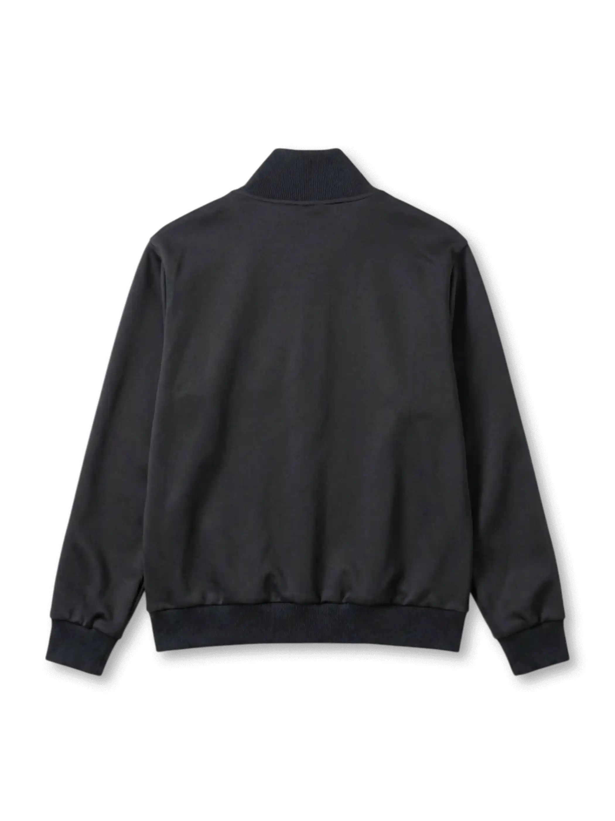 ボディ全体にジェットブラックを配し、袖の3ストライプにレッドとブラックの細ラインを重ねた重厚感ある構成。左胸にadidasトレフォイルロゴをレッド刺繍で配置し、右胸にはマンチェスター・ユナイテッドのヴィンテージ円形エンブレムをゴールド・レッド・ホワイトのフルカラー刺繍で施す。フルジップ仕様のスタンドカラー、左右ジップポケット、裾と袖口はブラックのリブ仕上げで全体を引き締める。左裾にはadidas OriginalsとManchester Unitedのダブルロゴをレッドのフレームで縁取ったヘリテージラベルを配置。非試合用・復刻ライフスタイルラインとして、1990年代の伝説的なブラックアウェイカラーを現代のシルエットで忠実に再現した一着。