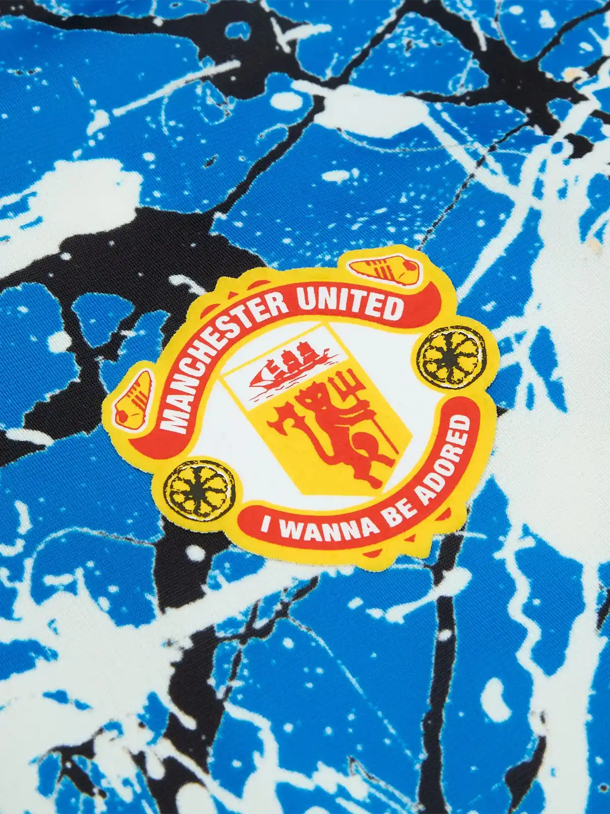素材は光沢感のあるトラックジャケット素材を採用し、adidas Originalsラインの仕様に準じた非試合用コレクターズアイテムとして位置づけられる。マンUとadidas Originals、英国ロックバンド・ストーン・ローゼズの三者コラボレーションモデル。